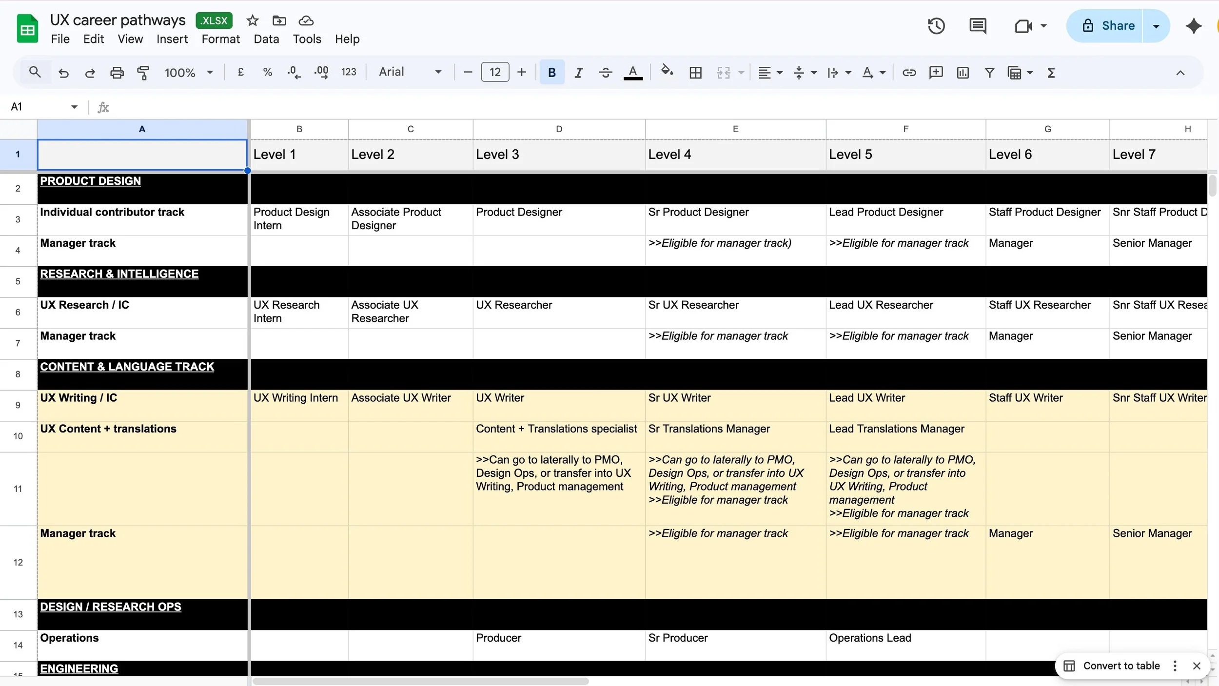 Pathways built for IC, Manager, UX Research, and UX Writing tracks