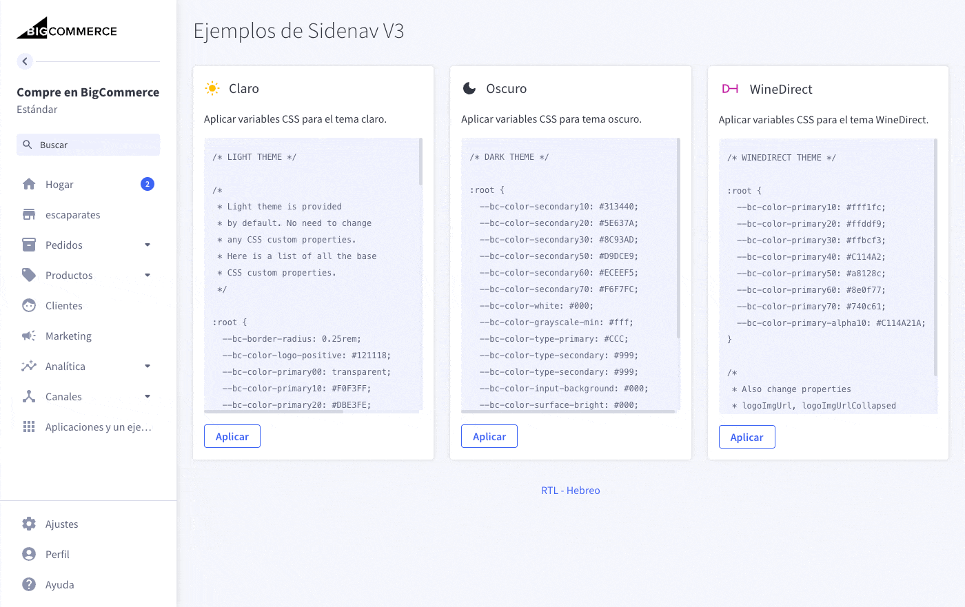 We went further, creating a coded prototype to illustrate a vision of an extensible, customizable navigation that showed how might we white label the UI, change theme colors, and enable RTL (right to left) language support.